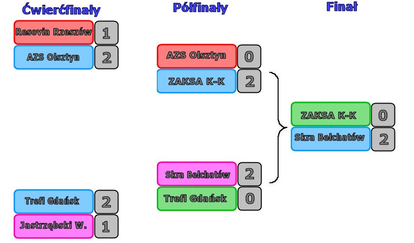 | II | ZAKSA Kędzierzyn-Koźle | Skra Bełchatów | 1:3 | 0:2 |